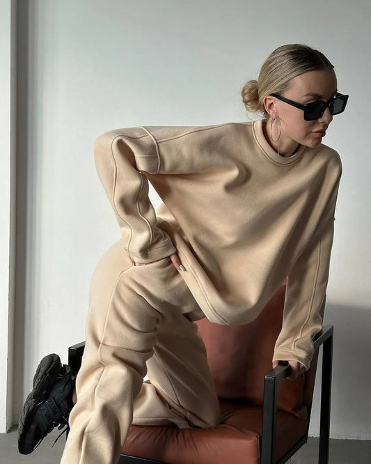 Women’s Lamb Wool Fleece-Lined Loose-Fit Sweatshirt