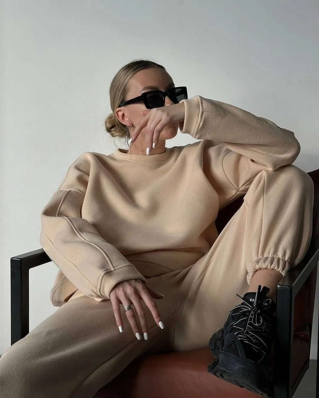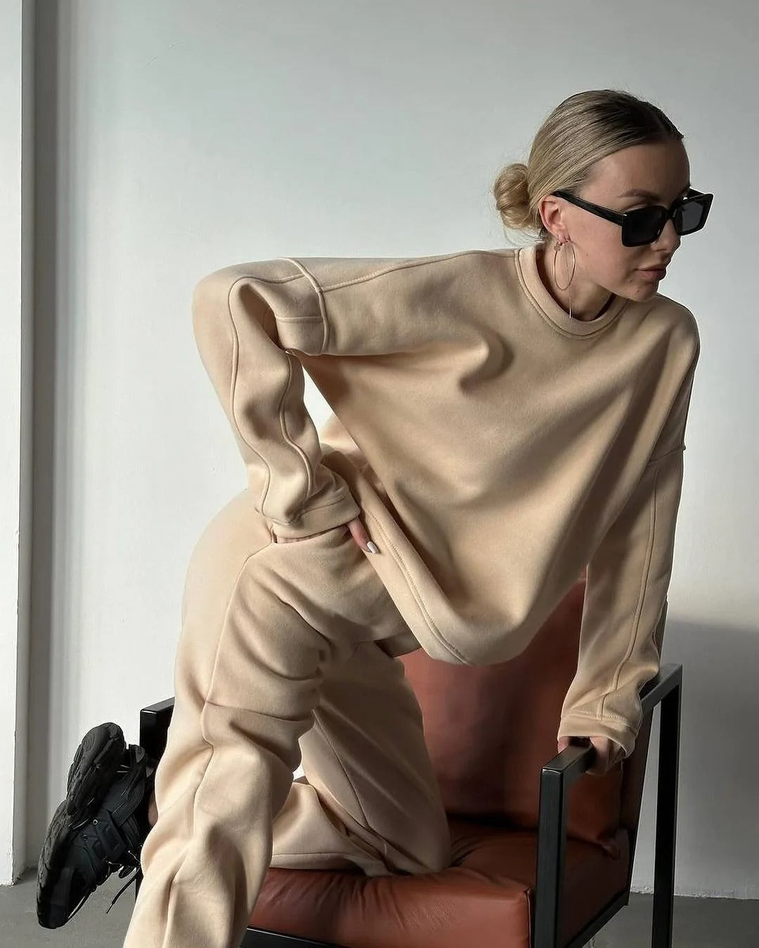 Stay warm and stylish this fall and winter with our Fleece-Lined Hoodie & Sweatpants Set, crafted for women who value both comfort and sustainability. This two-piece set, made from a blend of organic cotton and recycled fibers, combines cozy warmth with eco-conscious style. Featuring a fleece-lined hoodie and matching sweatpants, this set provides lasting warmth without compromising on style. The solid color design allows for easy mix-and-match versatility, whether you're relaxing at home or heading out for casual outings.