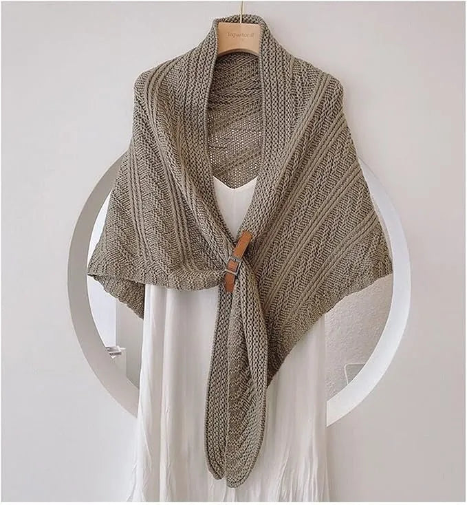 "This shawl is absolutely perfect for the colder months. The material is so soft and cozy, and the leather buckle adds a unique touch. I love how versatile it is, I can wear it as a scarf or a wrap!"